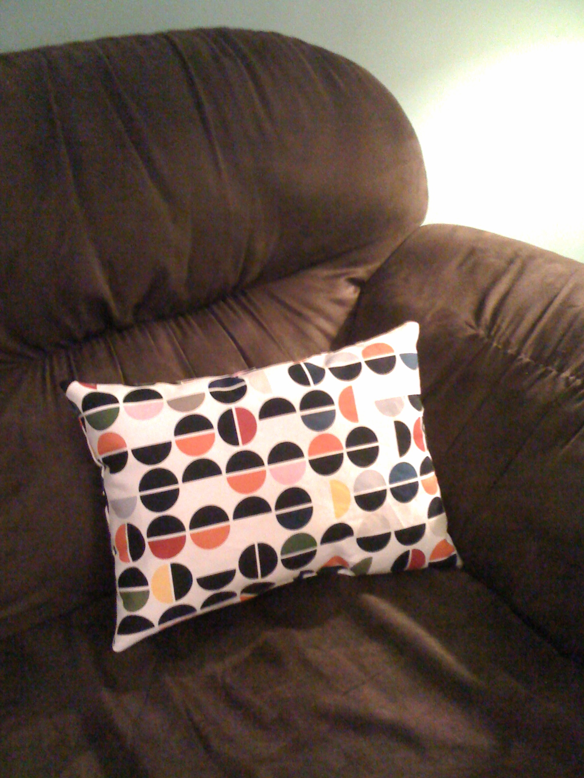 I also actually ended up with a little extra fabric, because I opted to not to do the tabs at the curtain tops. Just this morning, our lovely dog Paisley destroyed our cute little couch pillow. Since I already had the machine out and threaded I whipped up a new one from the same fabric.