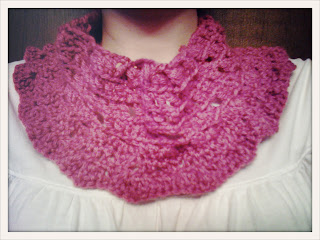 As you may know by now, I love to crochet. Yesterday I finished my most recent project - a scalloped cowl. It was made in the round from a pattern on Lion Brand Yarn's website: (http://www.lionbrand.com/patterns/90438B.html?noImages=) However, I only half used it. I needed a jumping off point, and I really liked the look of the stitches from the first three rows. Instead of following all of the instructions, I just repeated rows 1-3 throughout the entire project. I also used a much thinner yarn then they recommended for a lacier effect.